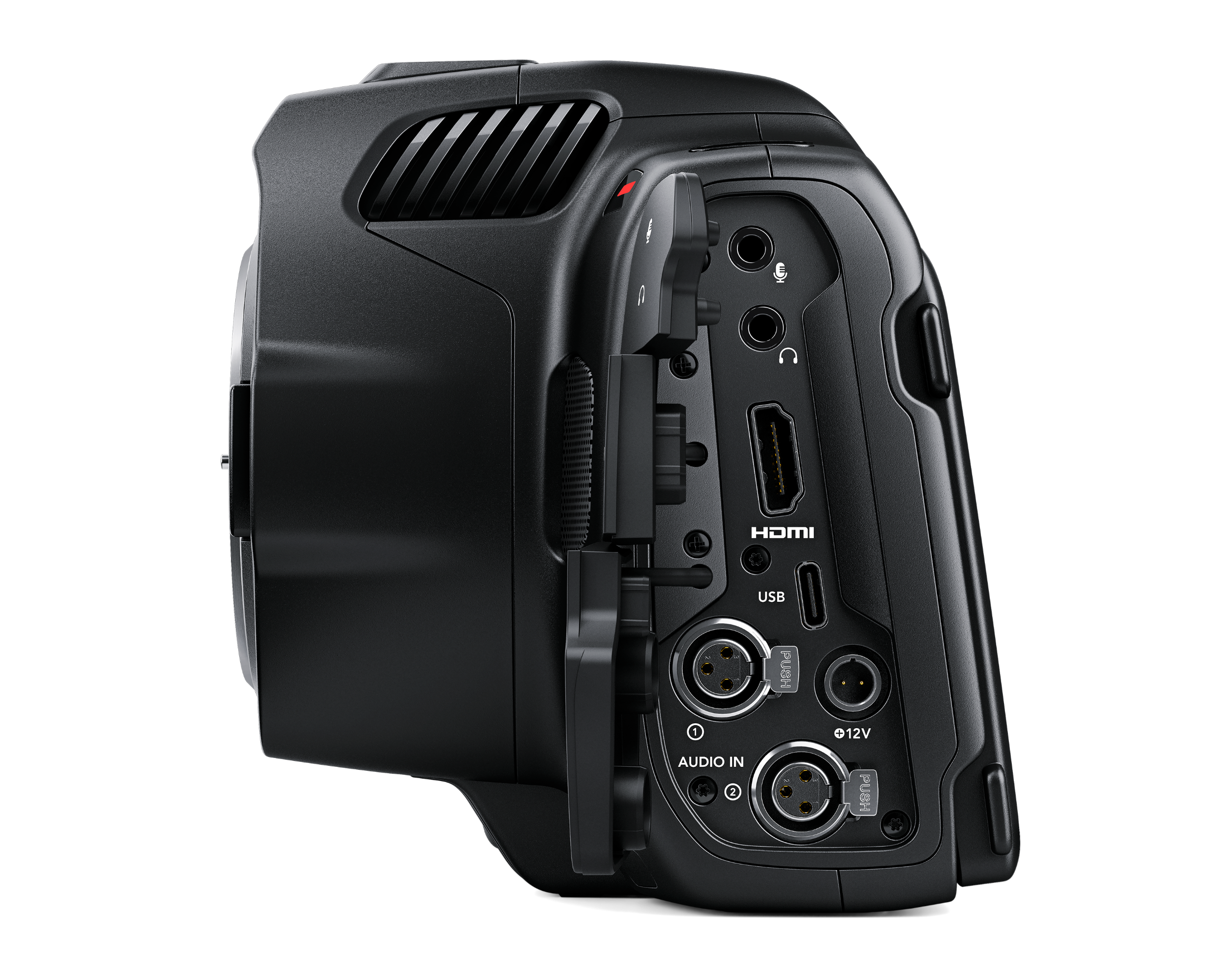 1 x CFast card slot, 1 x SD UHS‑II card slot, 1 x USB-C 3.1 Gen 1 expansion port for external media for Blackmagic RAW and ProRes Recording.